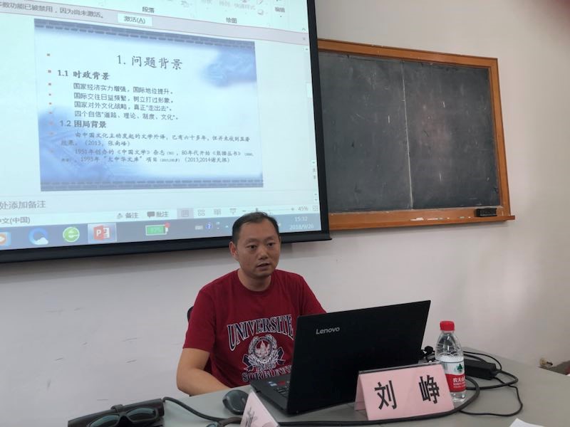 沙龙第一个环节,刘峥以“中华文化(典籍)外译困境研究”为题,从问题研究的背景、对策分析、策略尝试以及难点讨论等四个方面,阐释了中华文化经典在外译过程中面临的困境。刘峥指出,由国内发起的文化外译推广活动,已经走过了六十多年的路程,有进展,也面临一些亟待解决的问题。他通过具体事例阐释,从官方到民间,各个层面都在积极行动。分析认为,首先,从宏观上,文化外译需要接受心理与文化心理、文化向外推广与文化交流、官方行动翻译与民间自发等几个层面的合理对接;其次,微观上,文化经典外译实施过程中,既应重视语言和文本,更应考量除了这两个因素的其他因素,比如:国与国之间的文化差异、文学观念、社会生态等等;第三,在外译实施过程中,还要积极协调官方与民间的话语联系,坚持国家意识形态主导地位等。