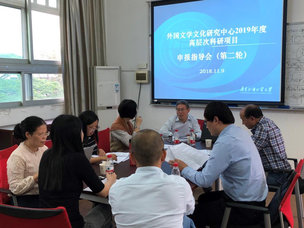 2018年11月9日16:30,我外国文学文化研究中心在北校区四教414举办2019年高层次项目申报第二轮专家指导会,中国人民大学文学院博士生导师、国家社科基金评委张永清教授应邀作为指导专家出席。中心张向荣教授、李日容博士、许栋梁博士、张巧博士、柴冬冬博士参加指导会。会议由中心主任张进教授主持。