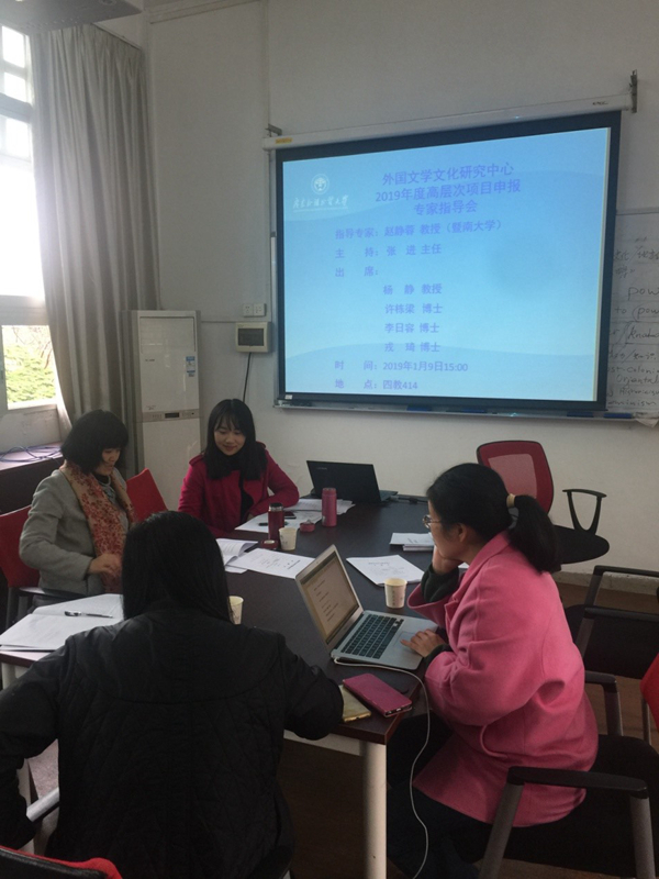 2019年1月9日15:00,中心在四教414组织了2019年度高层次项目申报第三轮专家指导会。此次研讨会邀请到了暨南大学中文系主任赵静蓉教授担任指导专家,英文学院杨静教授、中心许栋梁博士、李日容博士、戎琦博士及部分青年教师、博士后,以及中心“比较文化研究”博士点部分在读博士生参加,活动由中心主任张进教授主持。