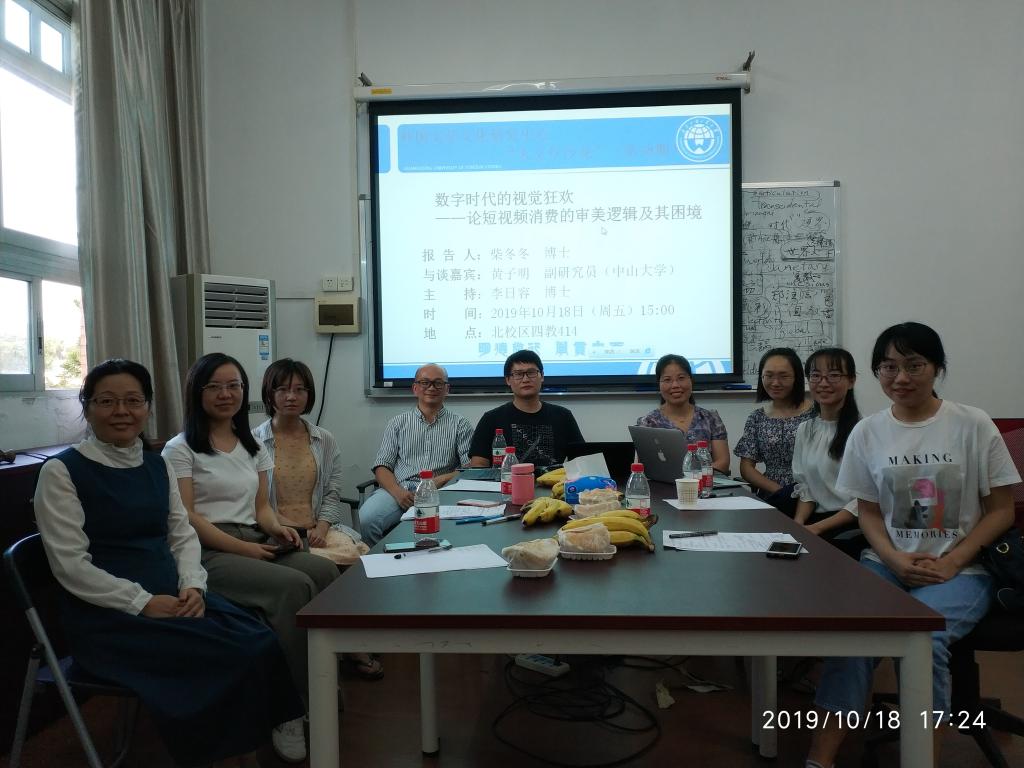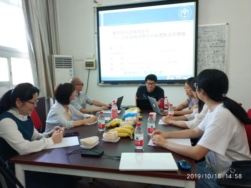 在本期沙龙中,中心博士后柴冬冬博士作了题为“数字时代的视觉狂欢——短视频消费的审美逻辑及其困境”的学术报告,柴冬冬博士对时下普遍流行的抖音、快手等短视频的消费现象作了深入浅出的审美逻辑及其困境的分析,认为短视频之所以能够在当下的文化消费市场中火爆,其深层原因是技术的革新转变了人们传统的视觉审美观念(如从绘画、摄影到今天的短视频无不表征着视觉审美观念与特征的演进与变化),就短视频的消费而言不可避免地呈现出人被技术“绑架”的总体特征,并具体体现为“刷屏即‘合理’”“好看即‘正义’”“展示即‘正途’”等“视觉狂欢”的特征,正是在这种现实背景下,深入思考和构建短视频消费的视觉伦理与正义,进而使得大众审美能够超越技术对其自身的消极影响,就成为当务之急。柴冬冬博士认为解决这个问题的根本途径在于重建主体性,并且在这个过程中,需要重点处理好技术与资本的关系、培养大众良好的审美品味以及积极培育主体的批判精神。