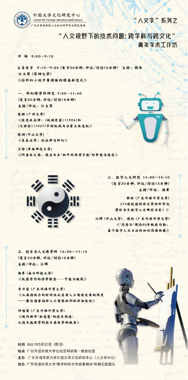 此次青年学术工作坊聚焦技术相关问题,充分彰显了跨学科的研究特色,文学、哲学、美学、电影学乃至法学、地理学和自然科学的视角都显现其中,东西方的多元文化视角也是一大特点。在跨学科交流碰撞与跨文化视域沟通中,本次工作坊取得了显著的成果,也为日后的持续开展奠定了良好基础。