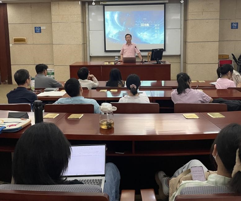此外,范教授还对中外科幻作品进行了比较。讲解结束后,现场展开了热烈的讨论。广外东方语言文化学院泰语系吴圣杨教授等参与讨论。同学们也争先恐后地提问,范教授均耐心细致地一一作答。