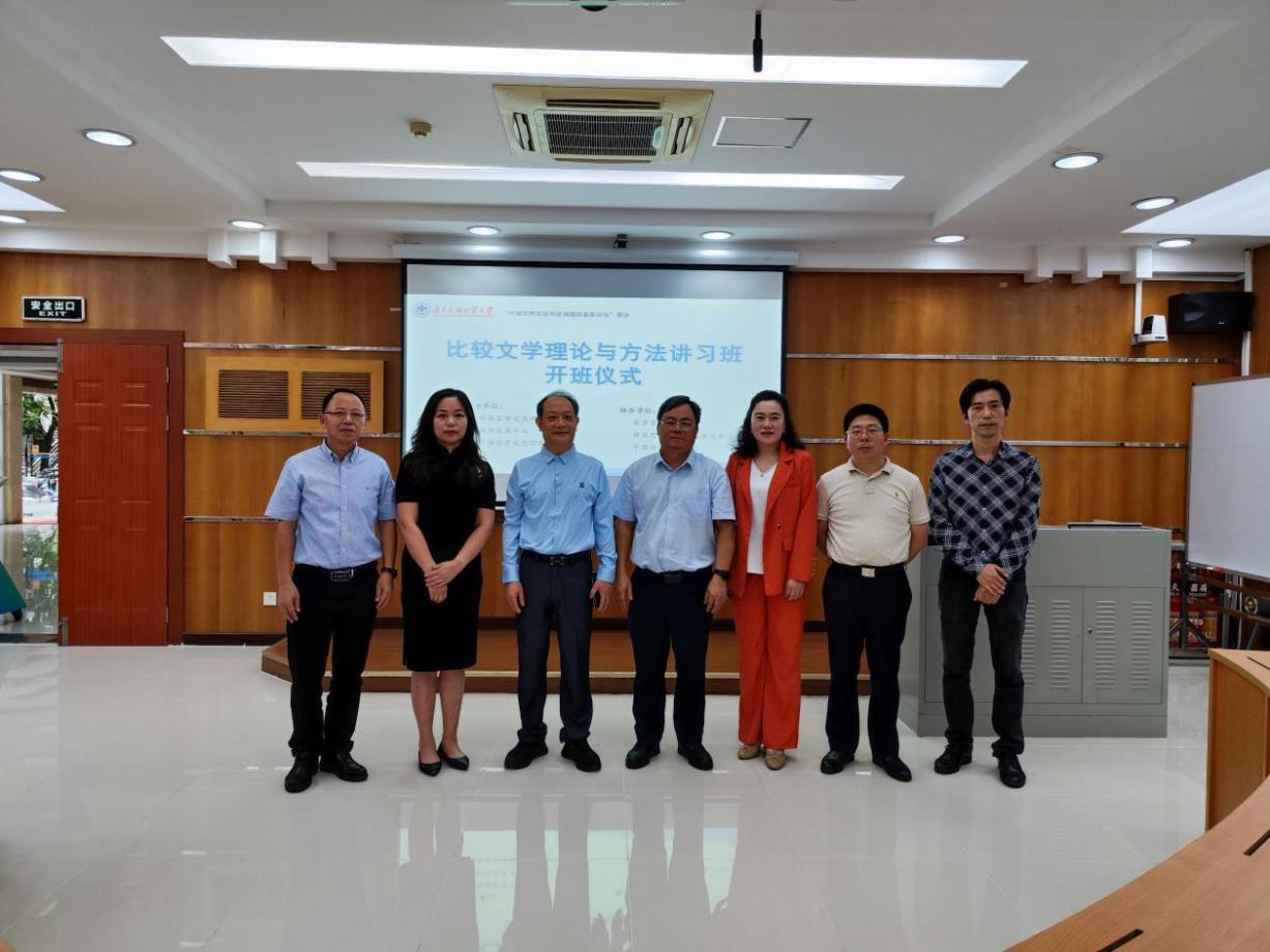 10月12日下午,“名家讲坛”开坛首讲“比较文学理论与方法讲习班”在白云山校区第九教学楼丝纺讲堂举行了开班仪式。活动由外国文学文化研究院院长茅银辉教授主持,党委教师工作部、人力资源部部长、教师发展中心主任谢文新研究员,日语语言文化学院院长杨晓辉教授,开坛主讲嘉宾王向远教授分别致辞。外国文学文化研究院副院长刘茂生教授、教师发展中心副主任董俊武教授和综合办公室主任姜黎老师,以及参加讲习班的我校青年学者出席。